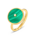 Exprimez votre noblesse avec cette somptueuse Bague Malachite, où la puissance de la malachite et l'éclat immémorial de l'or s'unissent dans une parfaite harmonie. Ses nuances de vert profond et ses motifs naturels deviennent un accord parfait de lumière qui sublime votre main avec sophistication. S’érigeant sur un anneau moderne aux reflets dorés, elle se marie avec aisance à toutes vos tenues, des plus informelles aux plus habillées.